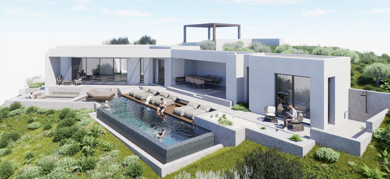Villa Klepsydra blends modern architecture with serene outdoor living, offering an exclusive retreat in South Crete.